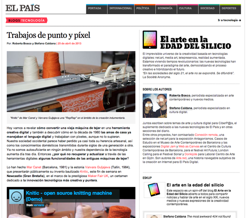 Roberta Bosco y Stefano Caldana wrote a great article on our research and story how we ended up developing an open source knitting machine Knitic.