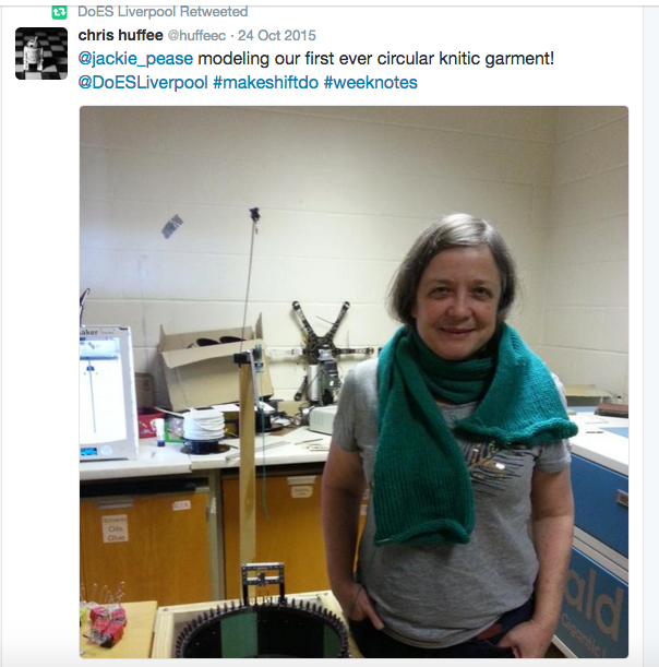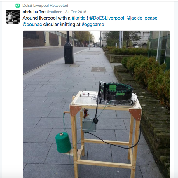 Liverpool knits with Circular Knitic! by admin · January 18, 2016 · leave a comment People at DoES Liverpool put together their 1st Circular Knitic and already producing scarfs and hats. Amazing!